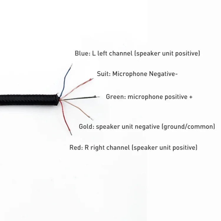 5. Blue wire L+, red wire R+, green wire MIC+, copper wire common ground, flower wire MIC-