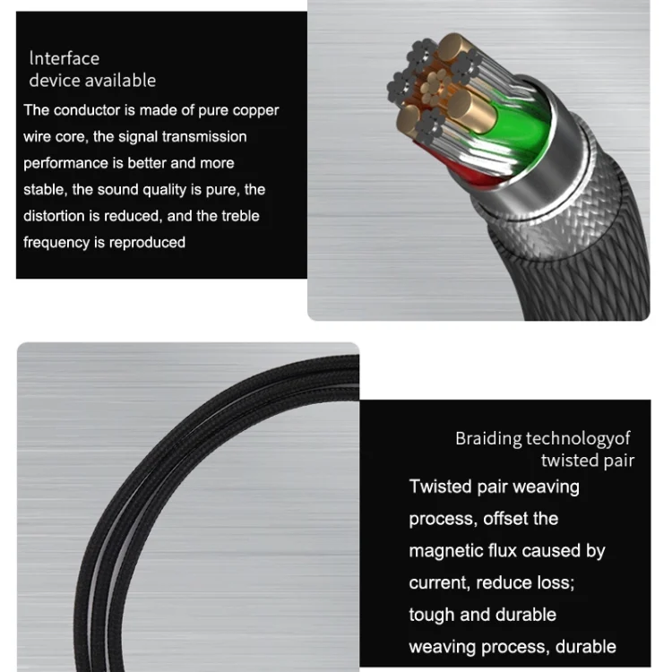 5. The conductor is made of pure copper wire core, the signal transmission performance is better and more stable, the sound quality is pure, the distortion is reduced, and the treble frequency is reproduced