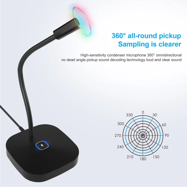HXSJ F12 360 Degrees Bendable Drive-free USB Computer Microphone, Cable Length: 2.2m