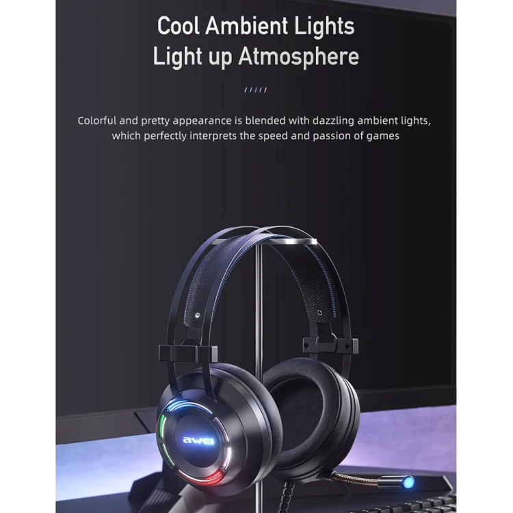 awei GM-2 USB + 3.5mm Ambient Light Gaming Wired Headset with Microphone