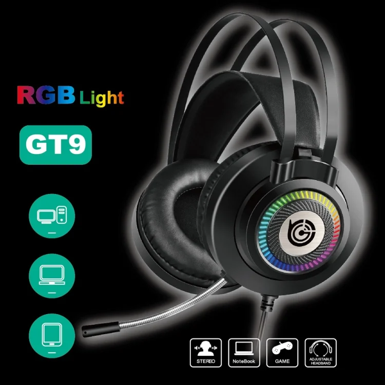 GT9 Professional LED Light Wired Gaming Headset with Mic for PC/PS4/PS5