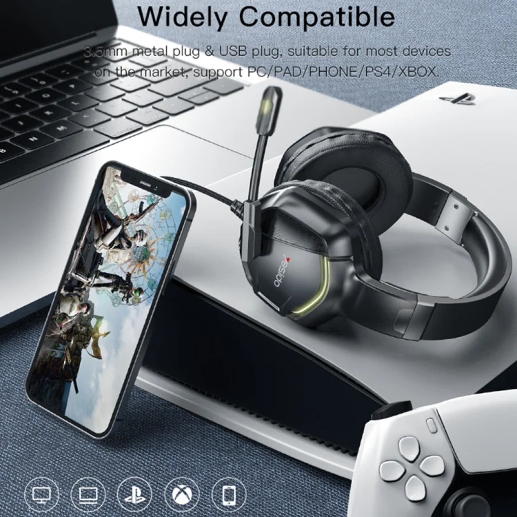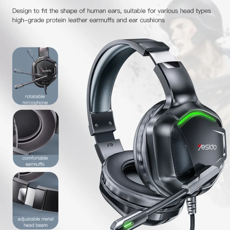 Yesido EK01 Head-mounted RGB Gaming Wired Earphone with Microphone