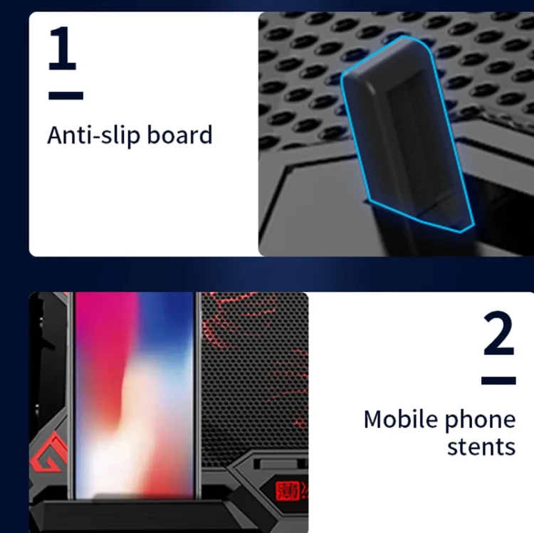 CoolCold 17inch Gaming Laptop Cooler Six Fan Two USB Port 2600RPM Laptop Cooling Pad