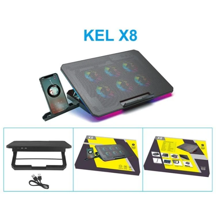 X8 Adjustable Height Notebook Cooler Foldable Laptop Stand 6 ARGB Fans Cooling Pad