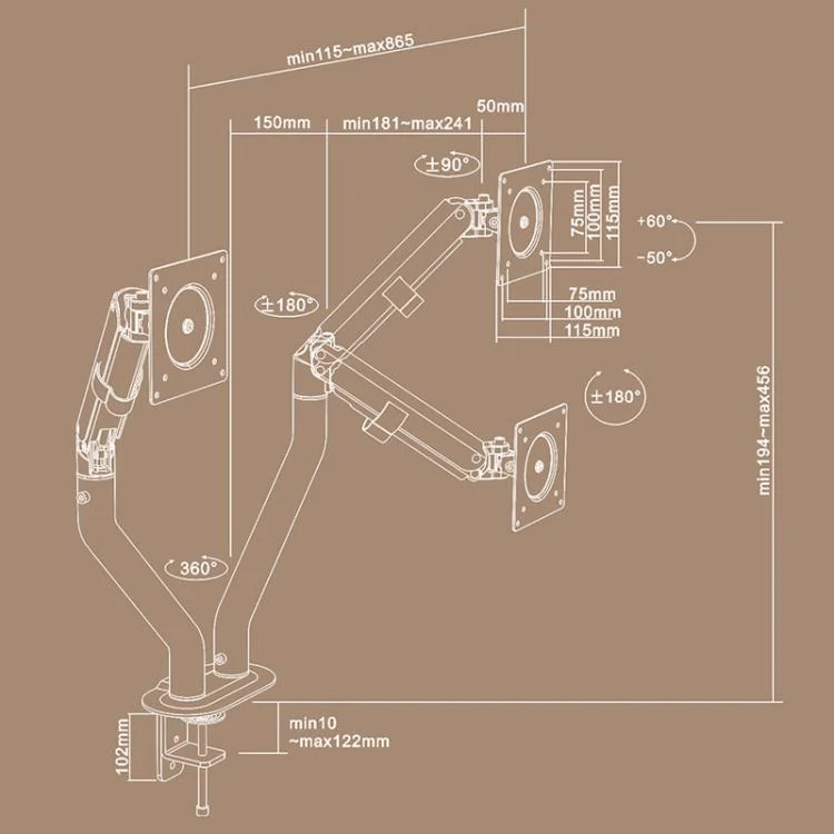 1. Dual-screen adaptation: supports 17-32-inch monitors, compatible with 75×75/100x100mm hole spacing