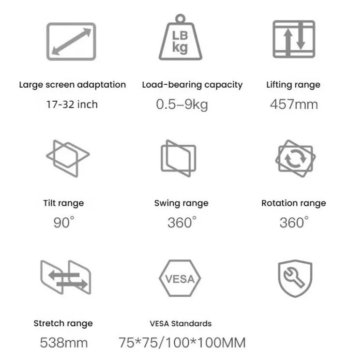 3. Omnidirectional adjustment: lifting 457mm/rotating 360 degrees/swinging 360 degrees/tilting 90 degrees/stretching 538mm