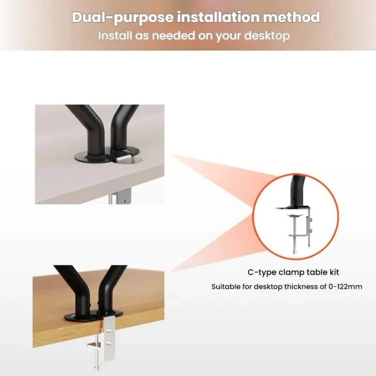 4. Easy installation: C-type clamping table + perforated dual mode, adapt to 0-122mm desktop thickness