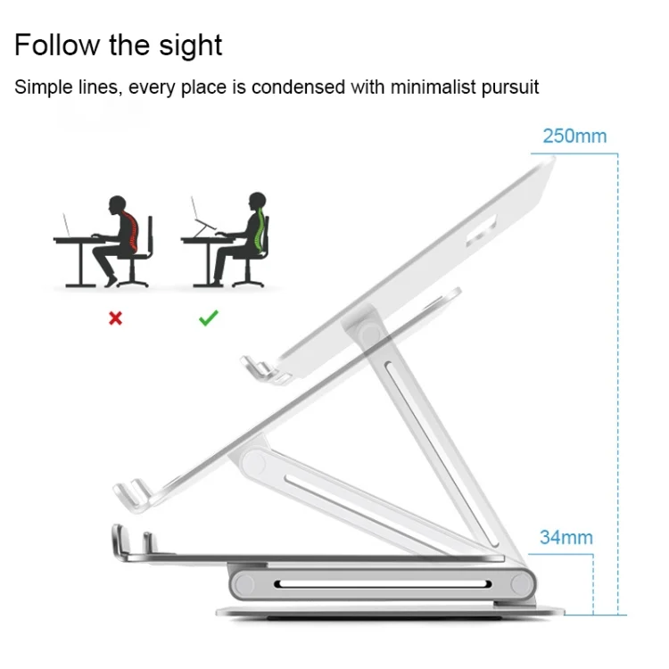 1. The laptop stand is made of aluminum alloy, the Z-type design is good for adjusting to an ideal height for typing, viewing and sitting.