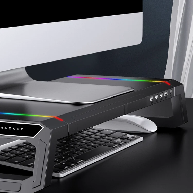 ICE COOREL T1 Monitor Increased Rack Foldable Laptop Stand With RGB Lighting & 4xUSB Expansion Interface