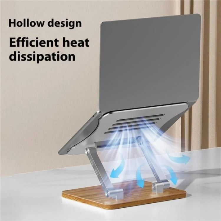 J27 Desktop Foldable Rotating Wooden Base Tablets Laptops Metal Cooling Holder