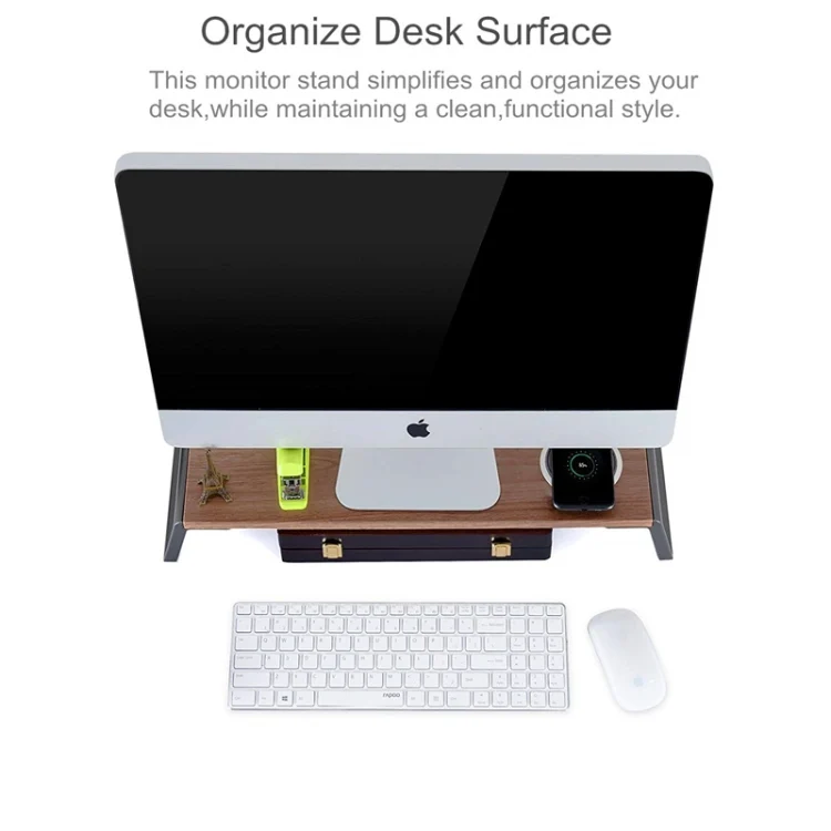 Monitor Stand Riser with Metal Feet for iMac MacBook LCD Display Printer, Lapdesk Tabletop Organizer Sturdy Platform Save Space