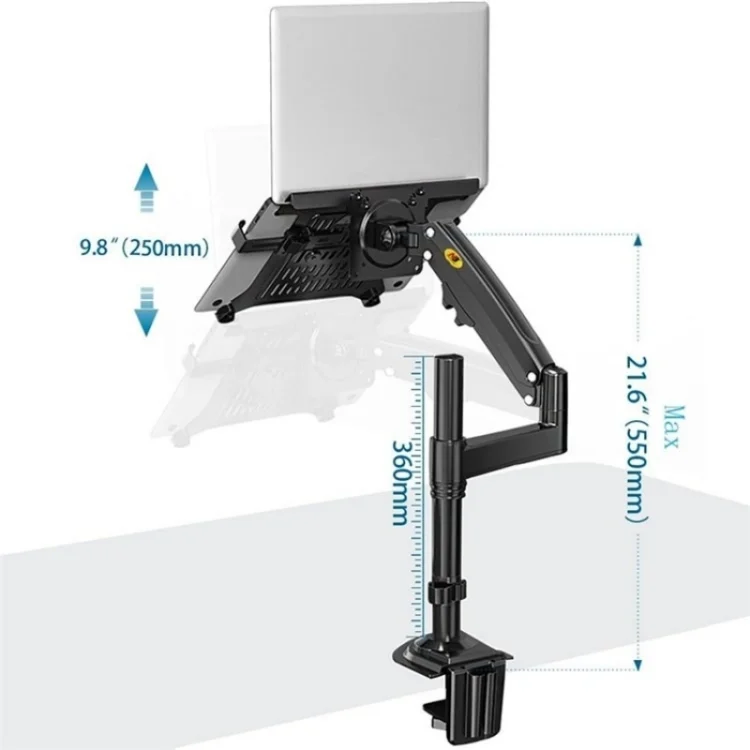 2. Fully Adjustable: The desktop laptop arm can tilt and rotate freely. The height and extension are adjustable up to 550mm, providing more options for comfortable postures.