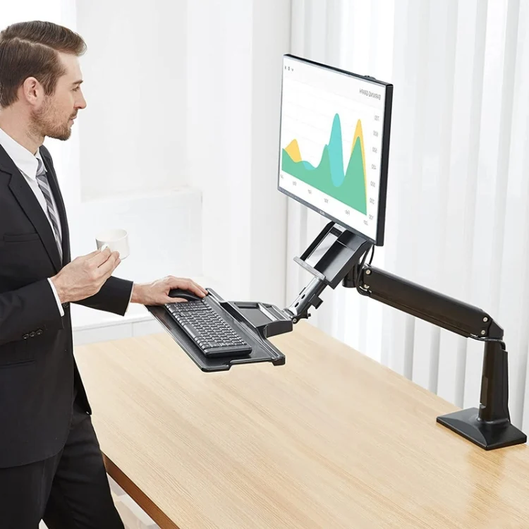 NORTH BAYOU NB35 Ergonomic 19-27 Inch Monitor Holder with Foldable Keyboard Tray Full Motion Sit-Stand Workstation