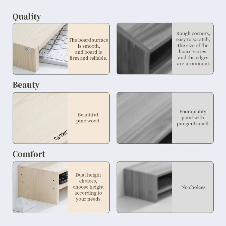 ORICO MSR-01-WD-BP Wood Grain Computer Monitor Holder, Size: 50 x 20 x 6.1cm