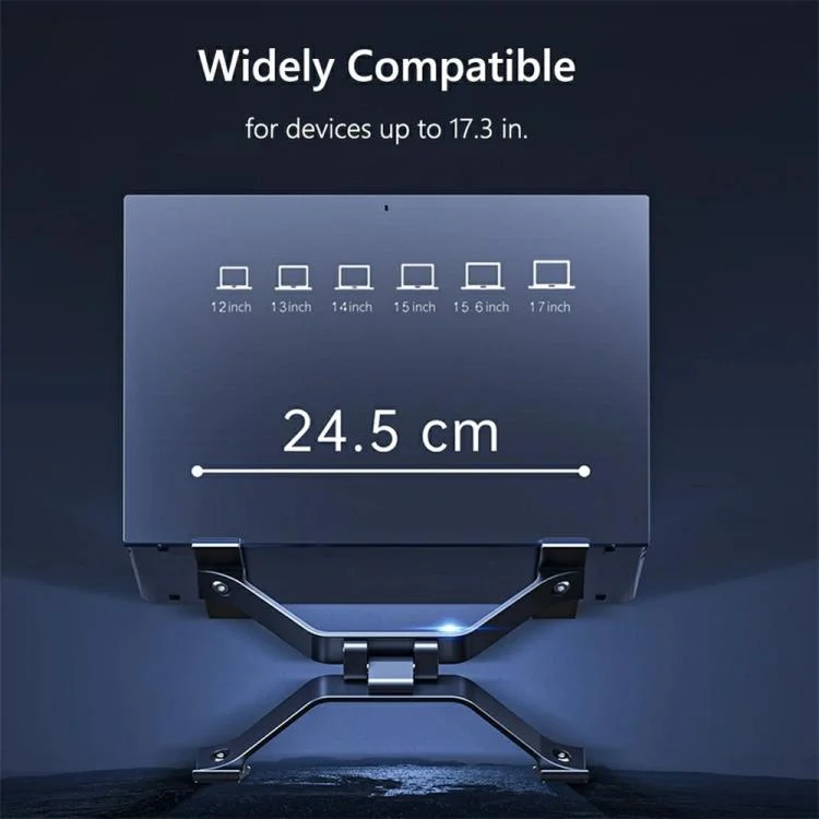 2. Universal Compatibility: This laptop stand is suitable for devices ranging from 12 to 17 inches, including laptops, tablets, and drawing pads, making it versatile for various electronic devices.