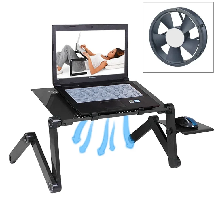 Portable 360 Degree Adjustable Foldable Aluminium Alloy Desk Stand with Cool Fans & Mouse Pad for Laptop / Notebook