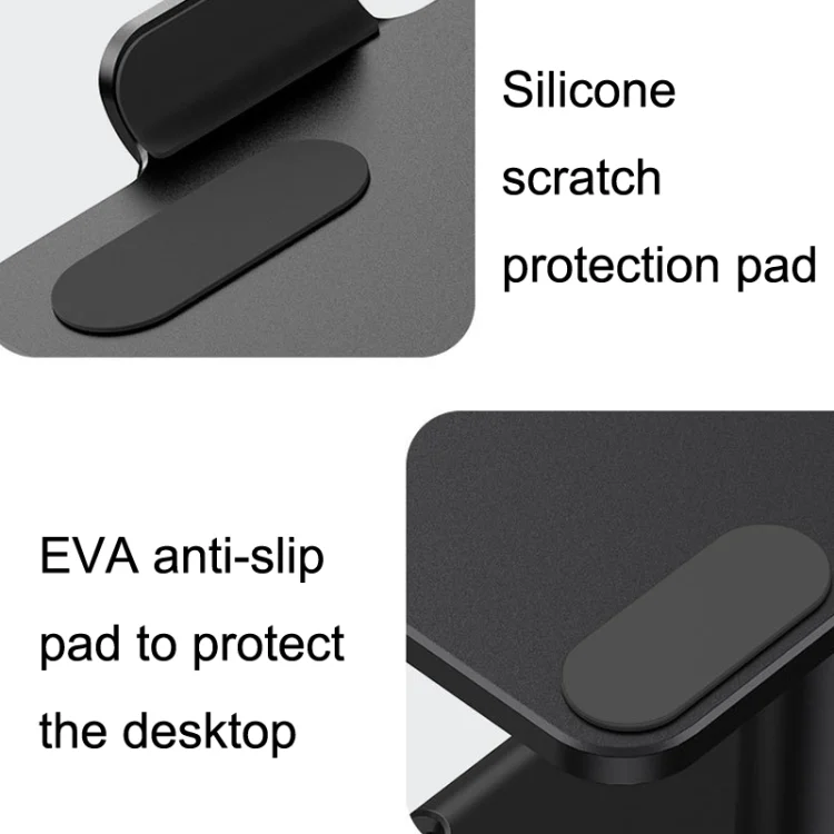 10. Thick aluminum rod firm, back hollow development heat dissipation, silicone scratch protection pad, EVA anti-slip pad to protect the desktop