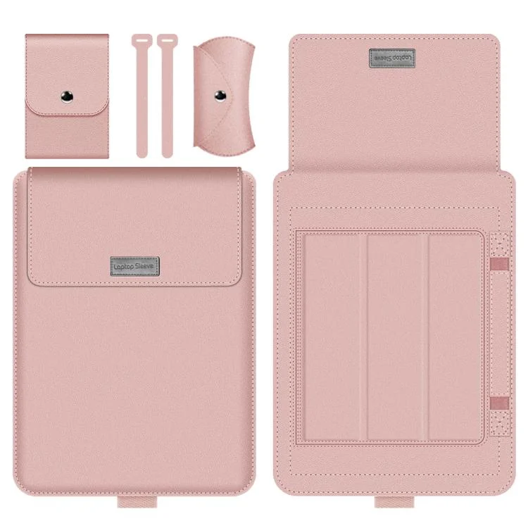 4 in 1 Universal Waterproof PU Leather Laptop Liner Bag with Handle & Stand & Pen Holder + 2 Winders + Mouse Bag + Charger Bag Set for 13 / 14 inch Laptops