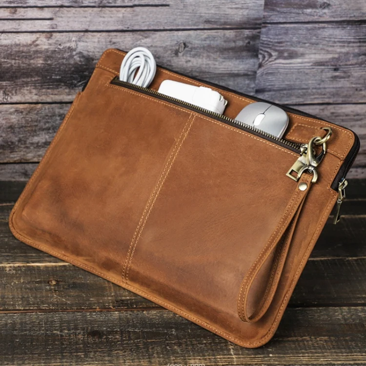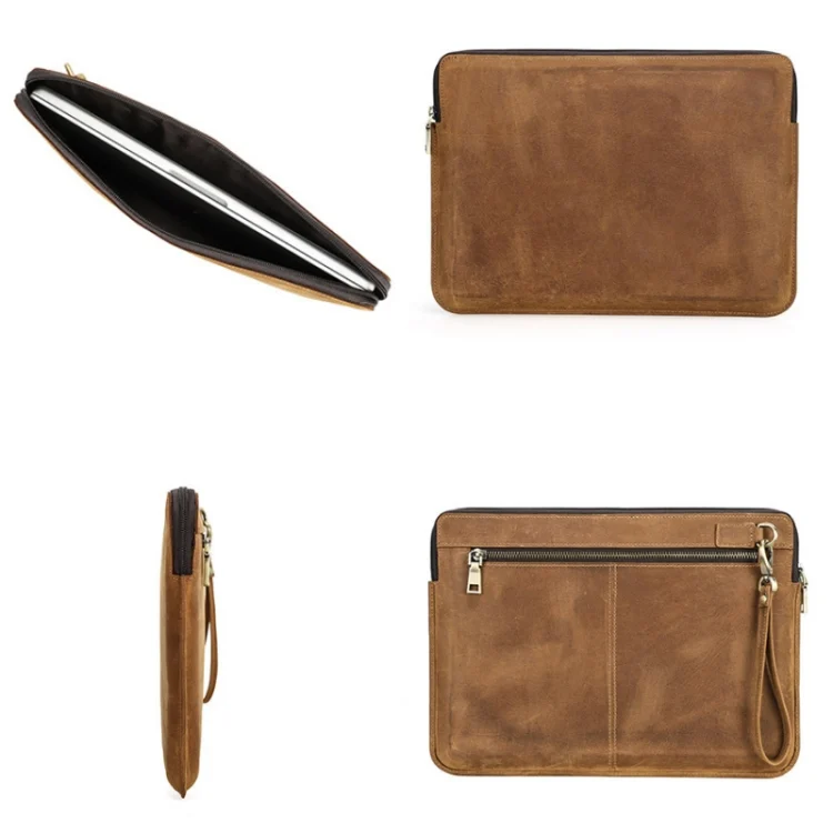 Men Retro Oil Wax Leather Handbag 17 Inch Computer Bag Shoulder Diagonal Briefcase
