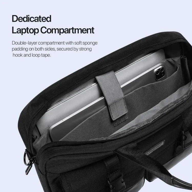 2. Double-layer computer independent compartment, with soft sponge layer on the front and back, with strong hook and loop fastener to firmly fix your device.
