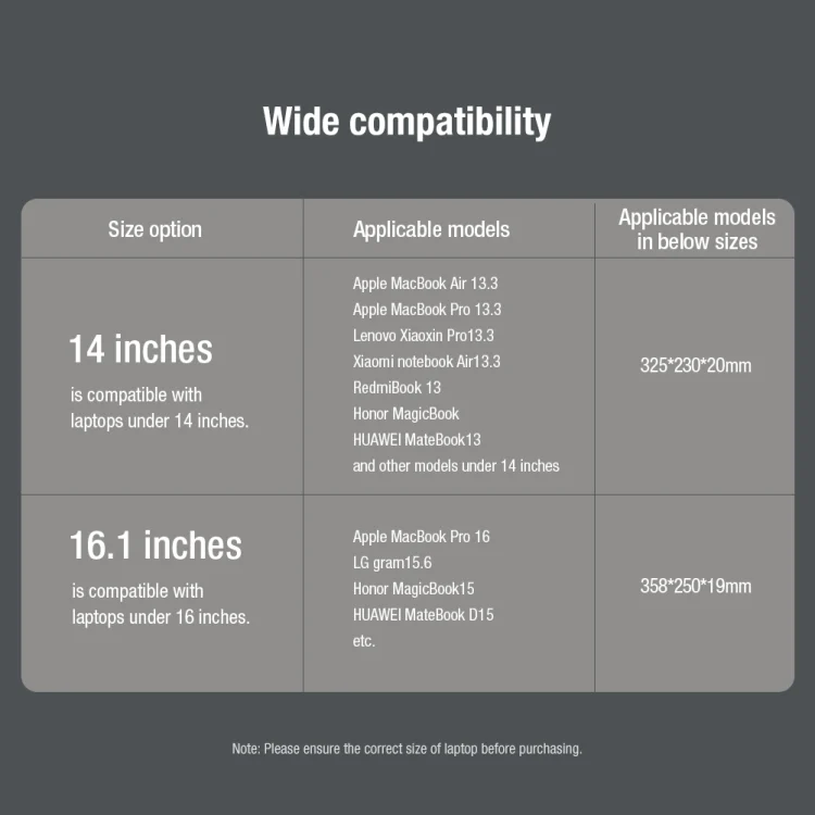 For 14.0 inch and Below ,For 16.0 inch and Below |