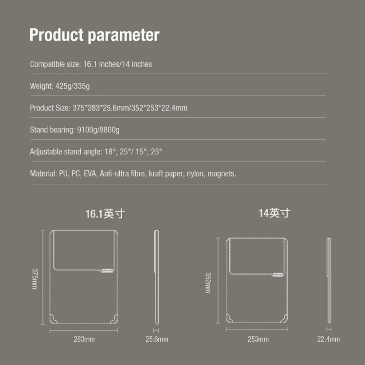 6. Size: 14 inches: 365x260x27mm, 16 inches: 390x290x30mm