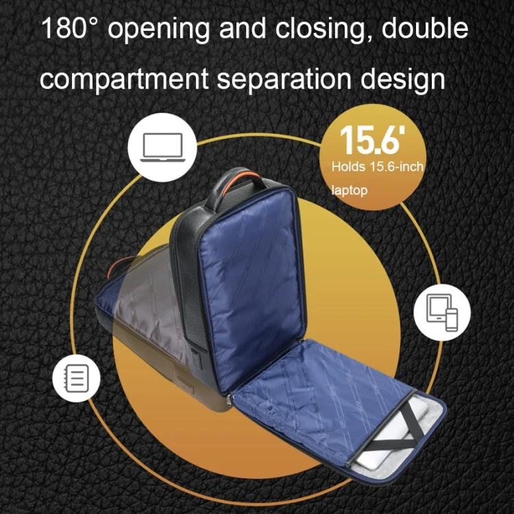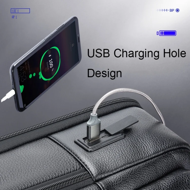 Bopai 61-70111 Cowhide Multi-compartment Waterproof Anti-theft Backpack with USB Charging Hole