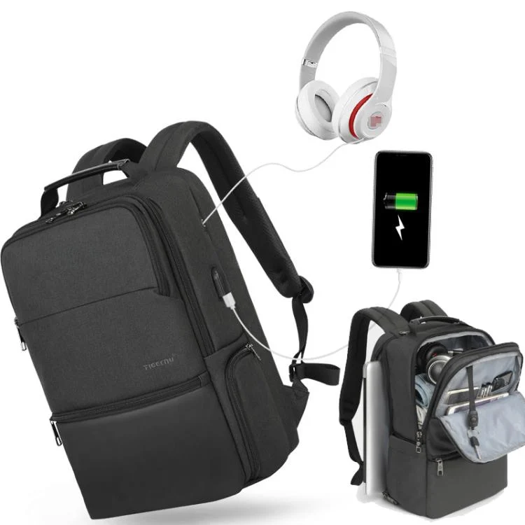 Men Anti-Theft Laptop Backpack with USB Charging Port, Headphone Hole & Comfort Shoulder Straps for Travel, Work Commute