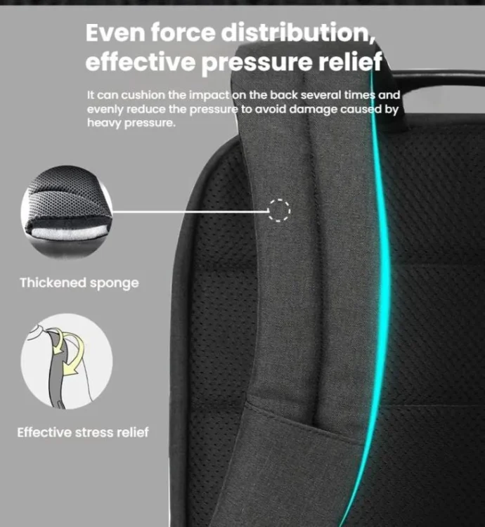 2. Multi-compartment design: Dedicated laptop compartment + main compartment + front combination pocket + front zippered pocket for organized storage.