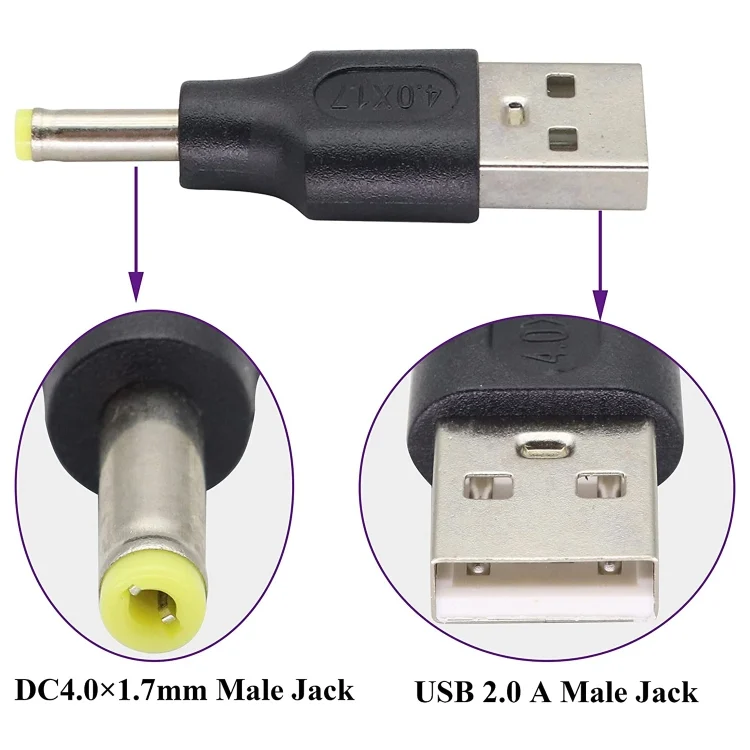 10 PCS 4.0 x 1.7mm Male to USB 2.0 Male DC Power Plug Connector