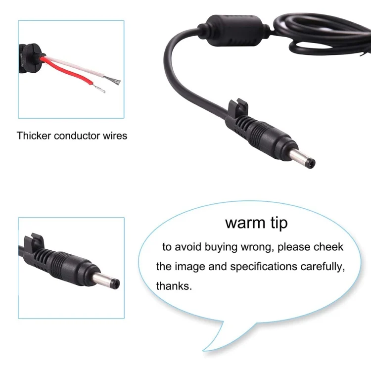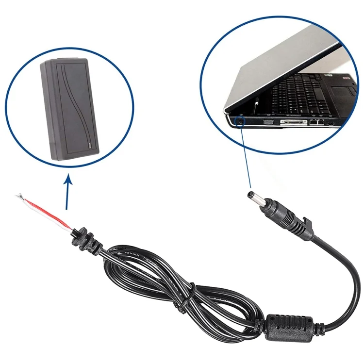 4.0 x 1.7mm DC Male Power Cable for Laptop Adapter, Length: 1.2m