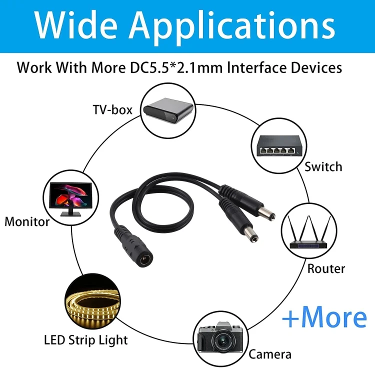 3. This DC power adapter Y cable pigtail splits 1 power signal into 2 and is useful for powering devices from one central adapter