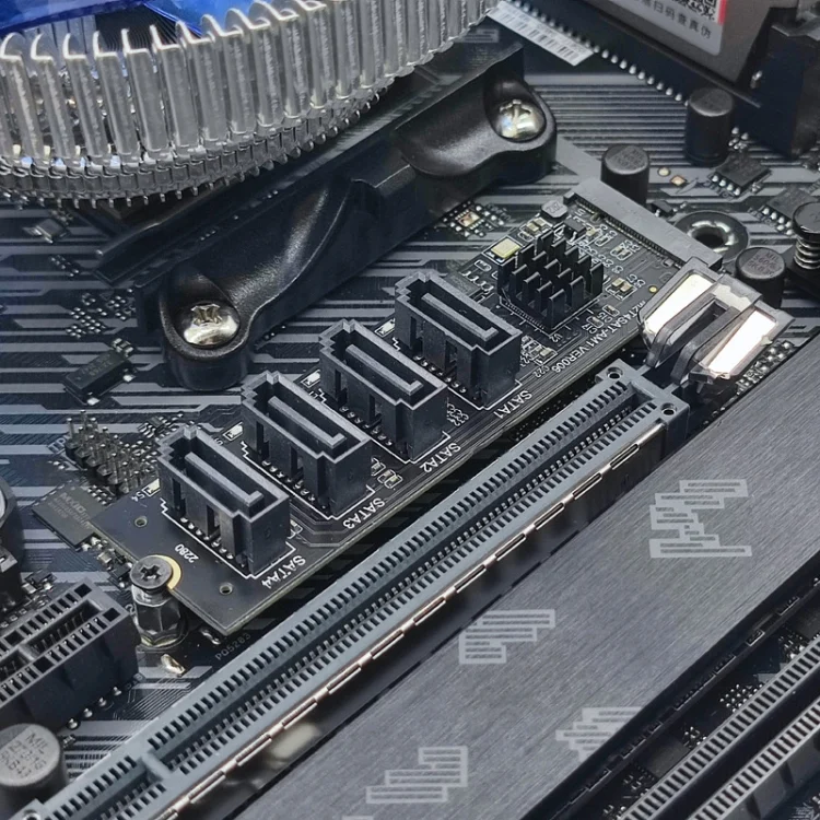 4. Function: Turn the idle motherboard KEY-M M.2 slot into 4 SATA3.0 6Gbps interfaces
