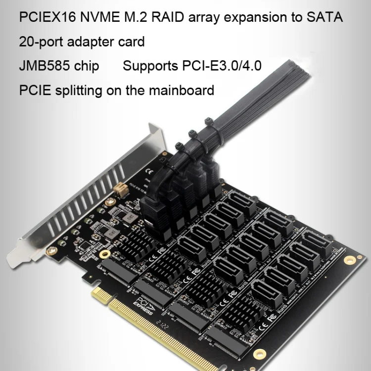 PCIEX16 NVME M.2 RAID Array Expansion SATA 20 Port Transfer Card