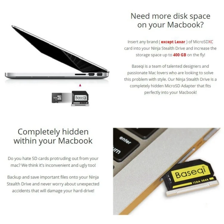 BASEQI Hidden Aluminum Alloy High Speed SD Card Case for Dell XPS 13.3 inch Laptop