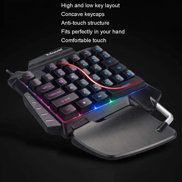 1. High and low key layout, concave keycaps, anti-touch structure, fit hand shape, comfortable touch feeling