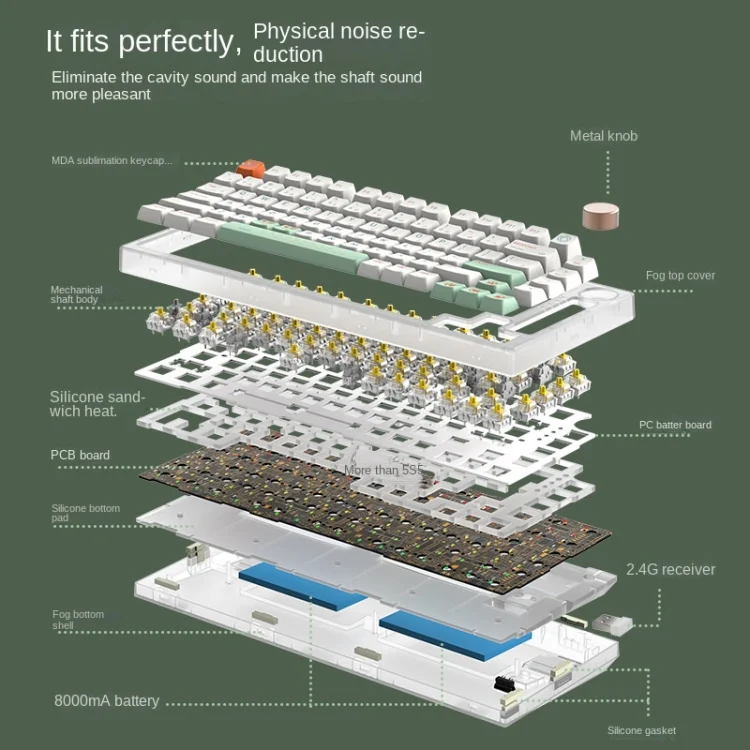 1. Metal knob, GASKET structure, PC positioning board, silicone sandwich pad, silicone bottom pad