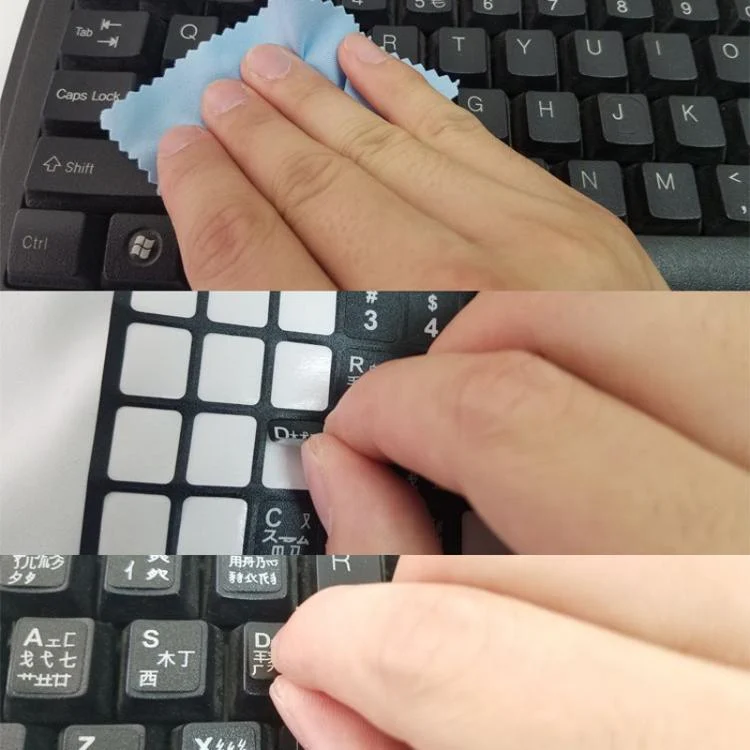 5. Instructions for use: wipe off the dust on the keyboard with a cloth, remove the keyboard sticker, stick it on the corresponding keys, press it several times to fully fit it