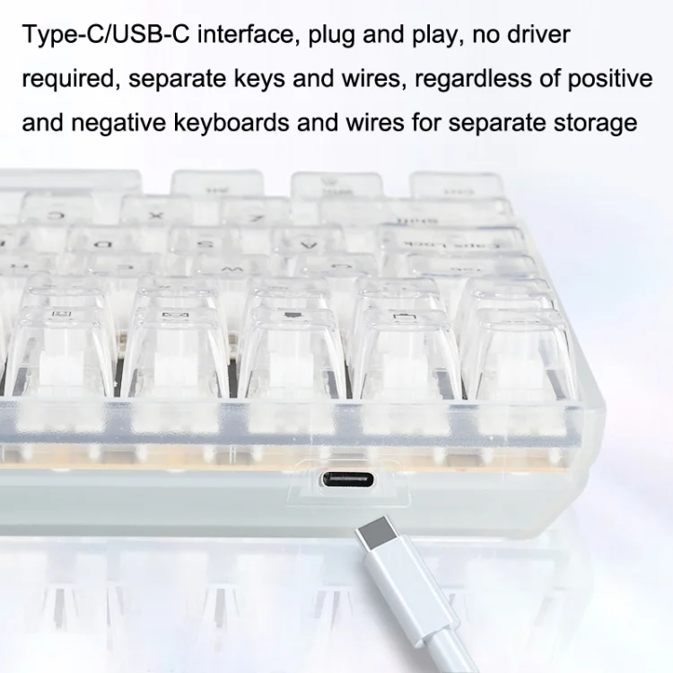 3. Type-C/USB-C interface, plug and play, no driver required, separate keys and wires, regardless of positive and negative keyboards and wires for separate storage