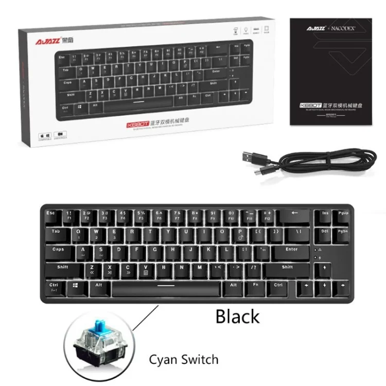 Ajazz K680T Mini USB Wired Dual-mode Charging 68-keys Laptop Bluetooth Mechanical Keyboard, Cable Length: 1.6m