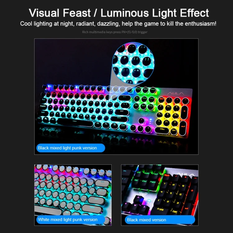 AULA S2016 104-keys Square Key Cap Mixing Light Mechanical Blue Switch Metal Panel Wired USB Gaming Keyboard, Length: 1.6m