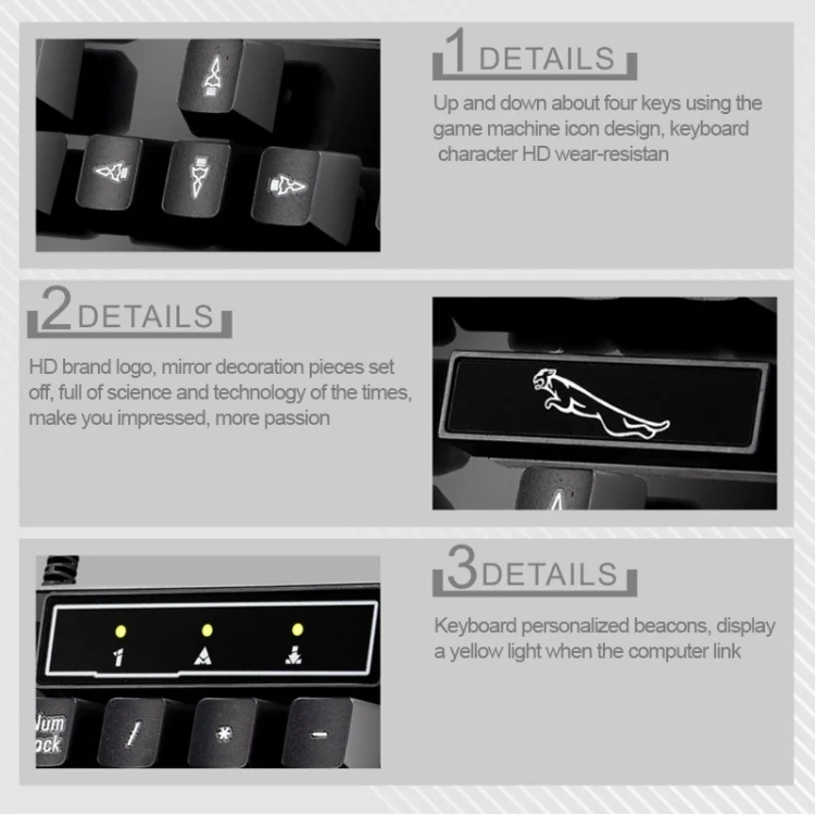 1. Keyboard floating high and low buttons, comfortable to touch, U-shaped design of the key cap, fit fingertips, long-term use is not exhausted, but also easy to clean.