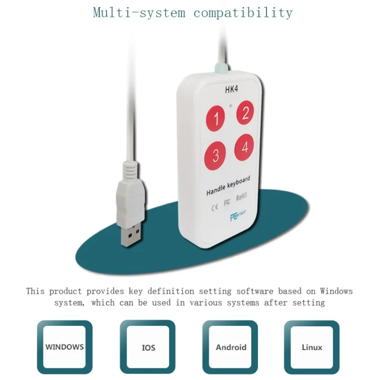 HK-4 4 Keys Custom Quick Copy and Paste Medical Ultrasound Acquisition USB Keypad, Cable Length: 2m