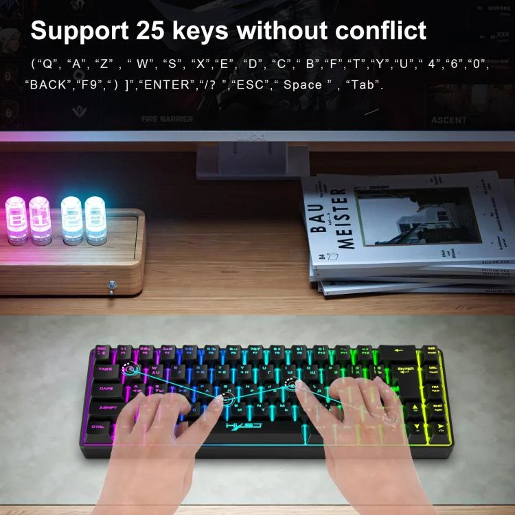 HXSJ V200 Russian Version Wired RGB Backlit Mechanical Keyboard 68 Key Caps, Cable Length: 1.7m