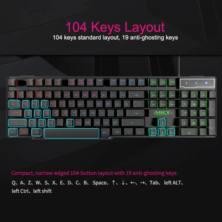 iMICE AK-600 Wired USB Floating Keycap Characters Glow Backlit Gaming Keyboard