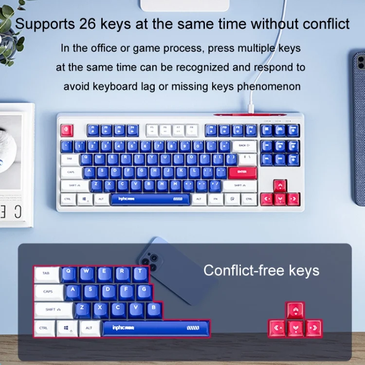 Inphic K902 Wired Keyboard 87 Keys Mute Light-up Mecha Office Home Gaming Computer Keyboard