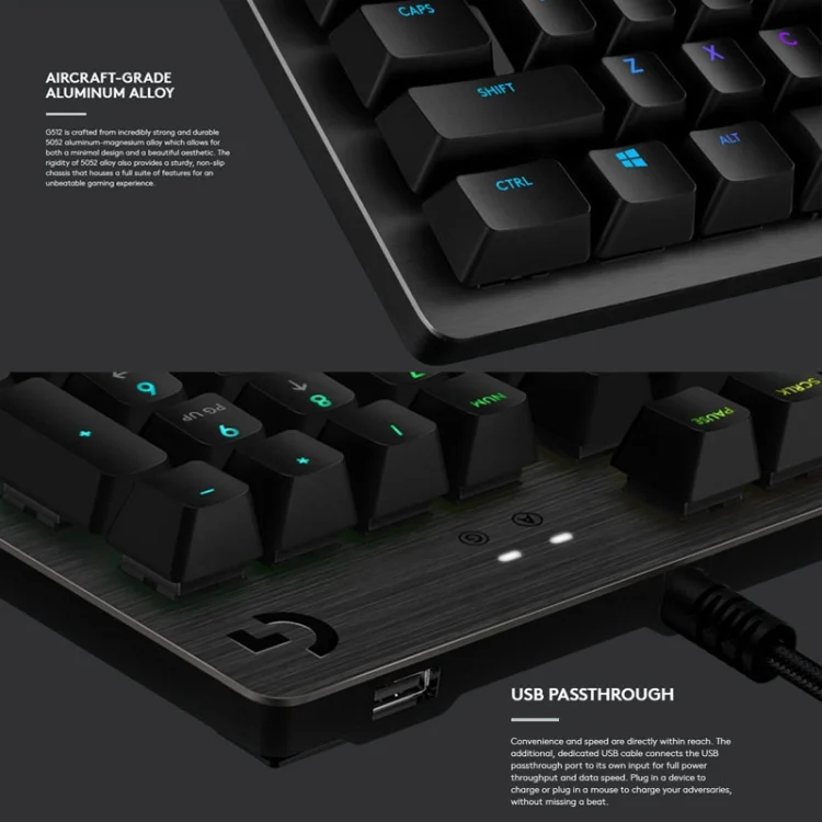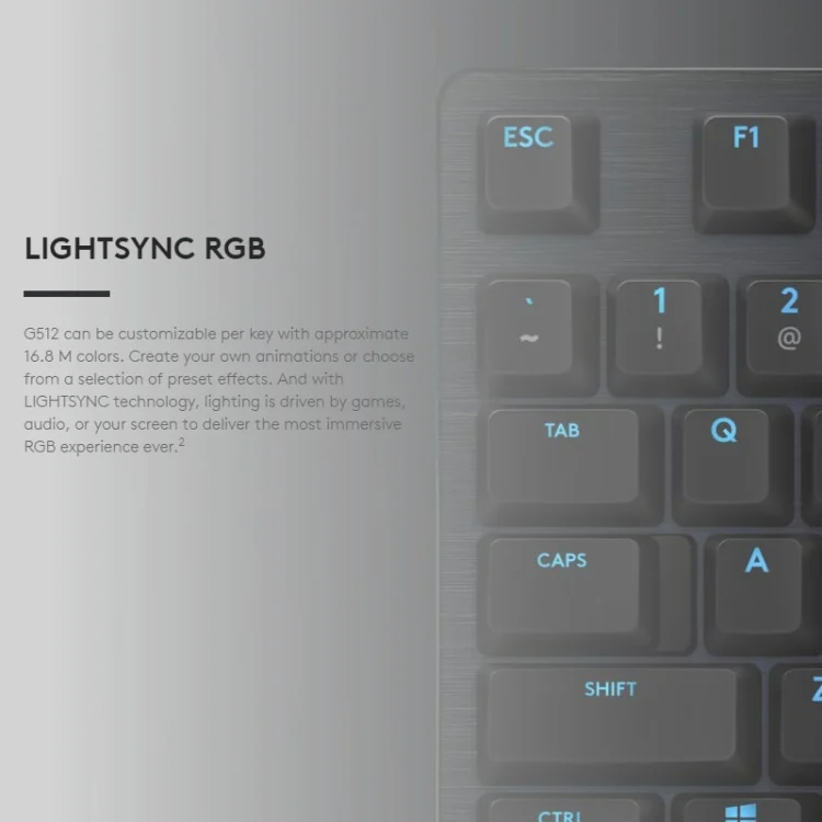 Logitech G512 RGB C-axis Mechanical Wired Gaming Keyboard, Length: 1.8m