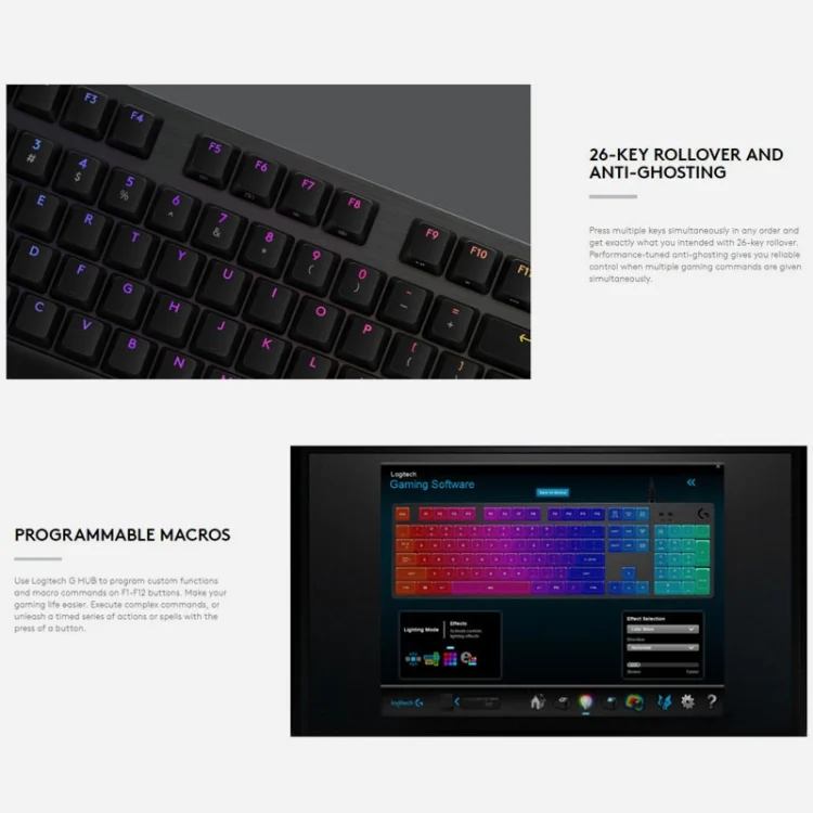 Logitech G512 RGB L-axis Mechanical Wired Gaming Keyboard, Length: 1.8m