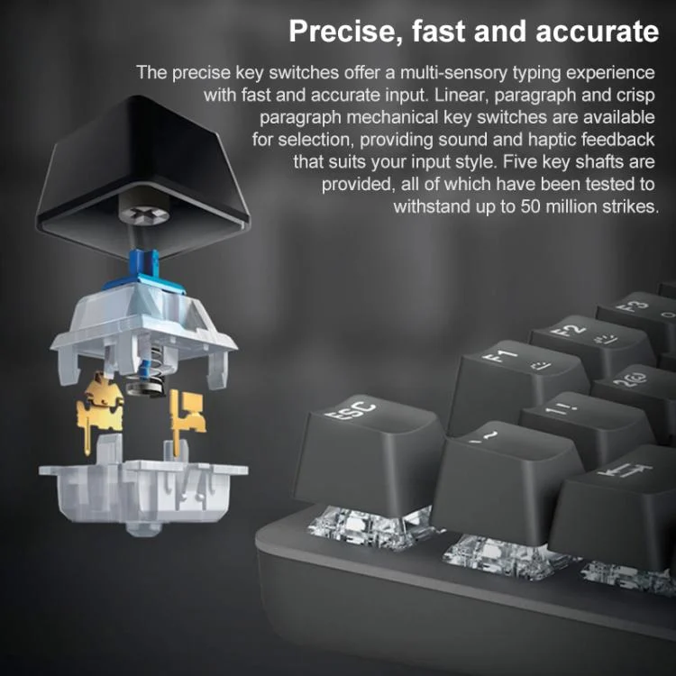 3. The rugged anodized aluminum top cover is very durable and can withstand up to 50 million knocks, and the molded characters will not fade or fall off