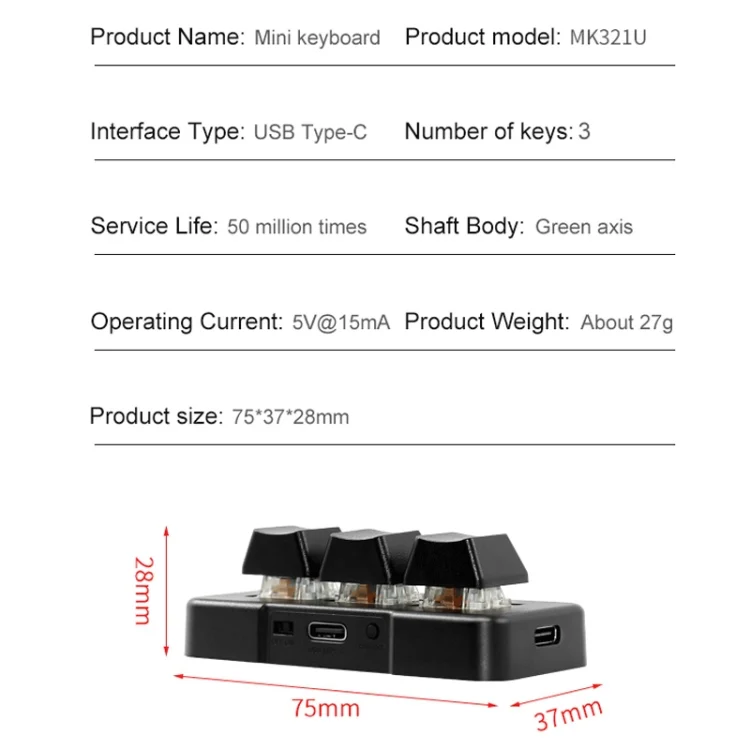 MK321 3 Keys Custom Keys Game Office PS Clip Macro Programming Keypad, Cable Length: 1.5m